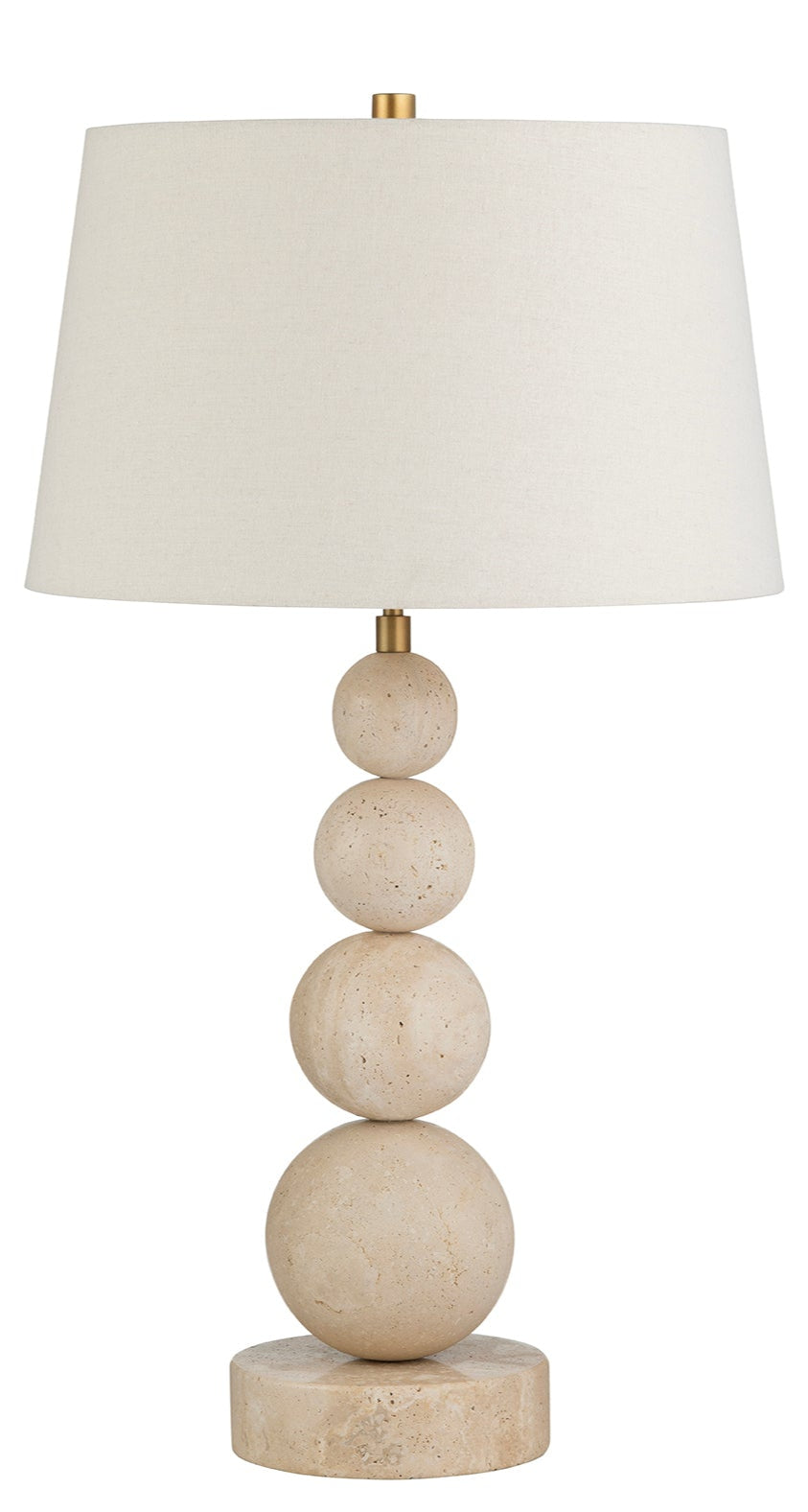 A study in form and texture, this lamp features a striking series of stacked travertine spheres, each showcasing the natural veining and subtle warmth of the stone. Its sculptural silhouette elevates any tabletop, blending artisanal craftsmanship with contemporary elegance. Perfect for adding a bold yet refined accent to living spaces, bedrooms, or entryways, this piece is as much art as it is illumination.