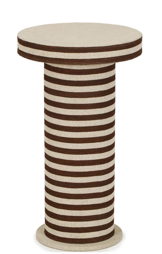 The Bennetot Side Table introduces a subtle, organic elegance to both residential and hospitality interiors. Crafted with striped cotton-jute surfaces, each piece offers layered texture and visual depth, while the pedestal base maintains a refined, timeless silhouette.