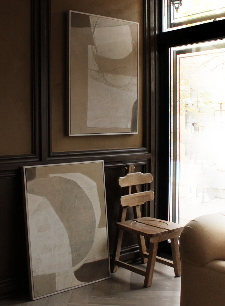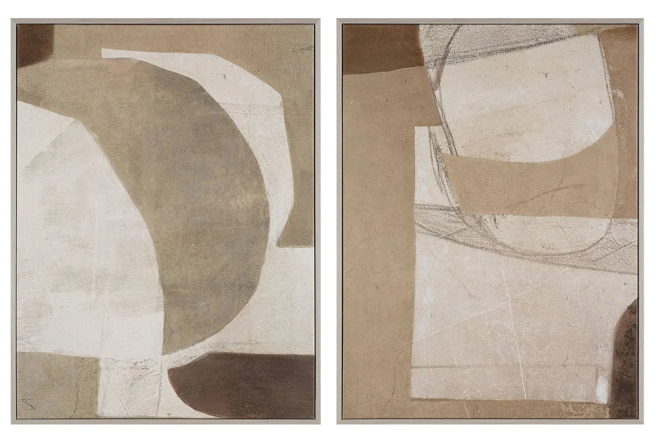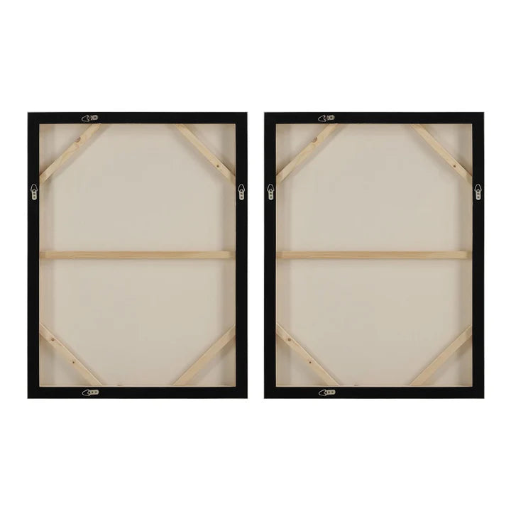 Expertly designed for both versatility and style, this pair of abstract canvases brings modern elegance to any contemporary interior. A harmonious blend of hand-painted and printed elements creates a dynamic, layered composition that feels both deliberate and artful. Framed in light walnut and equipped with 2-way hanging, this duo offers flexible display options, allowing you to curate a striking installation that suits your space perfectly.