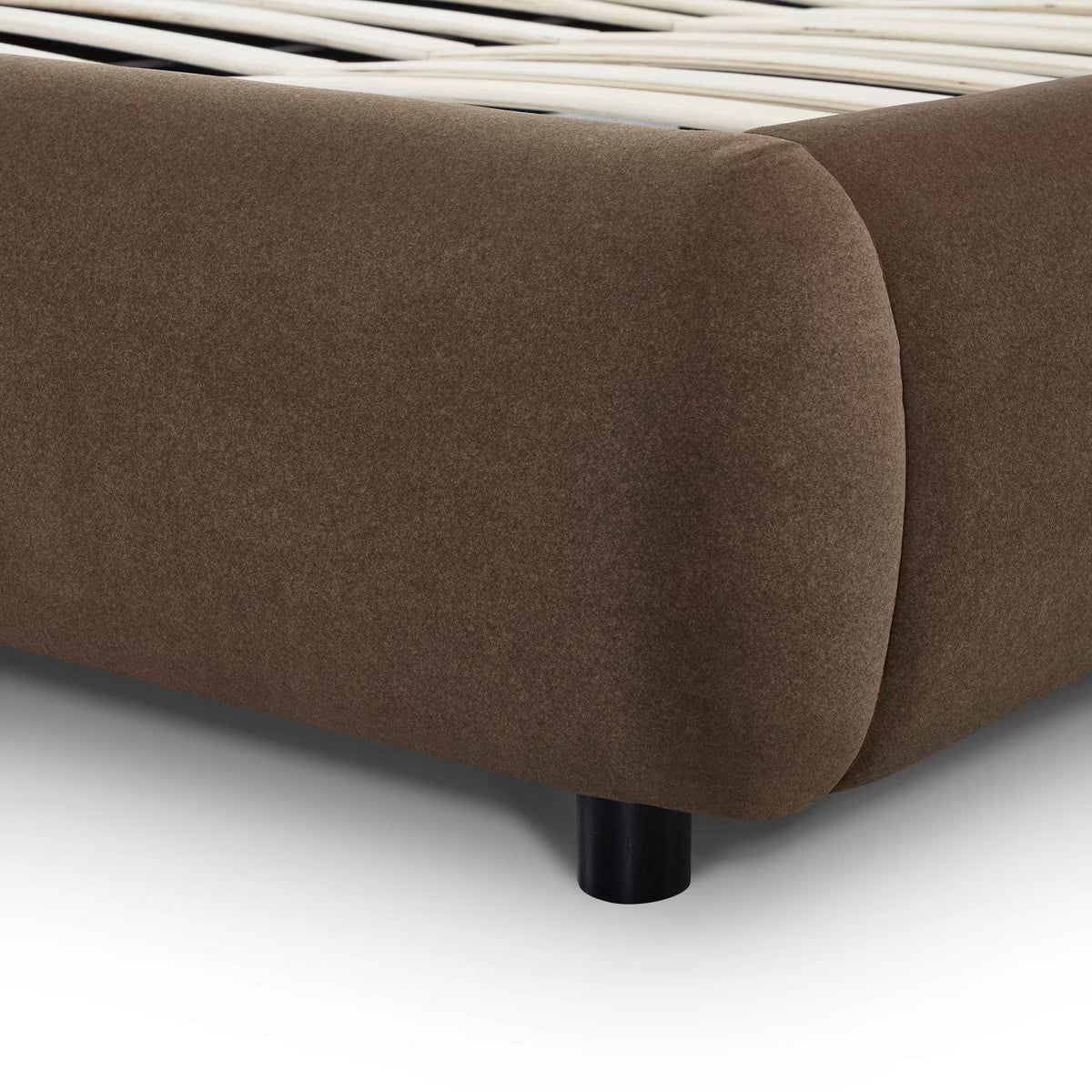 Swathed in ultra-soft vegan mohair, the Fazenda Bed is designed for lounging in style. Its generously cushioned pillow headboard, sculptural curves, and dramatic flange trim create a statement of cozy sophistication. Offered in rich, inviting hues, it brings warmth, texture, and an effortlessly chic presence to any bedroom.