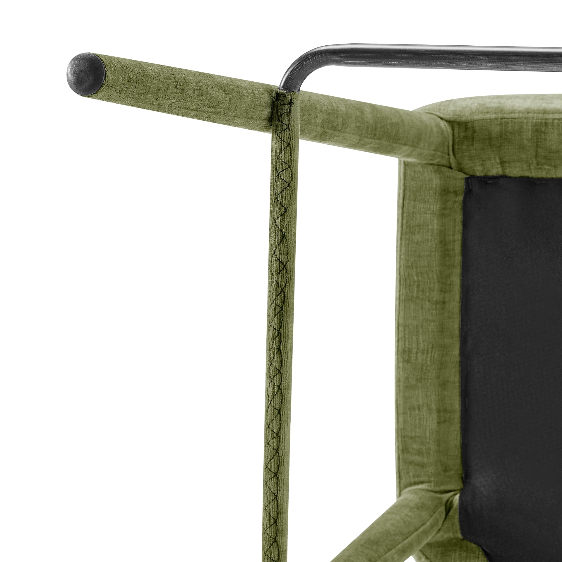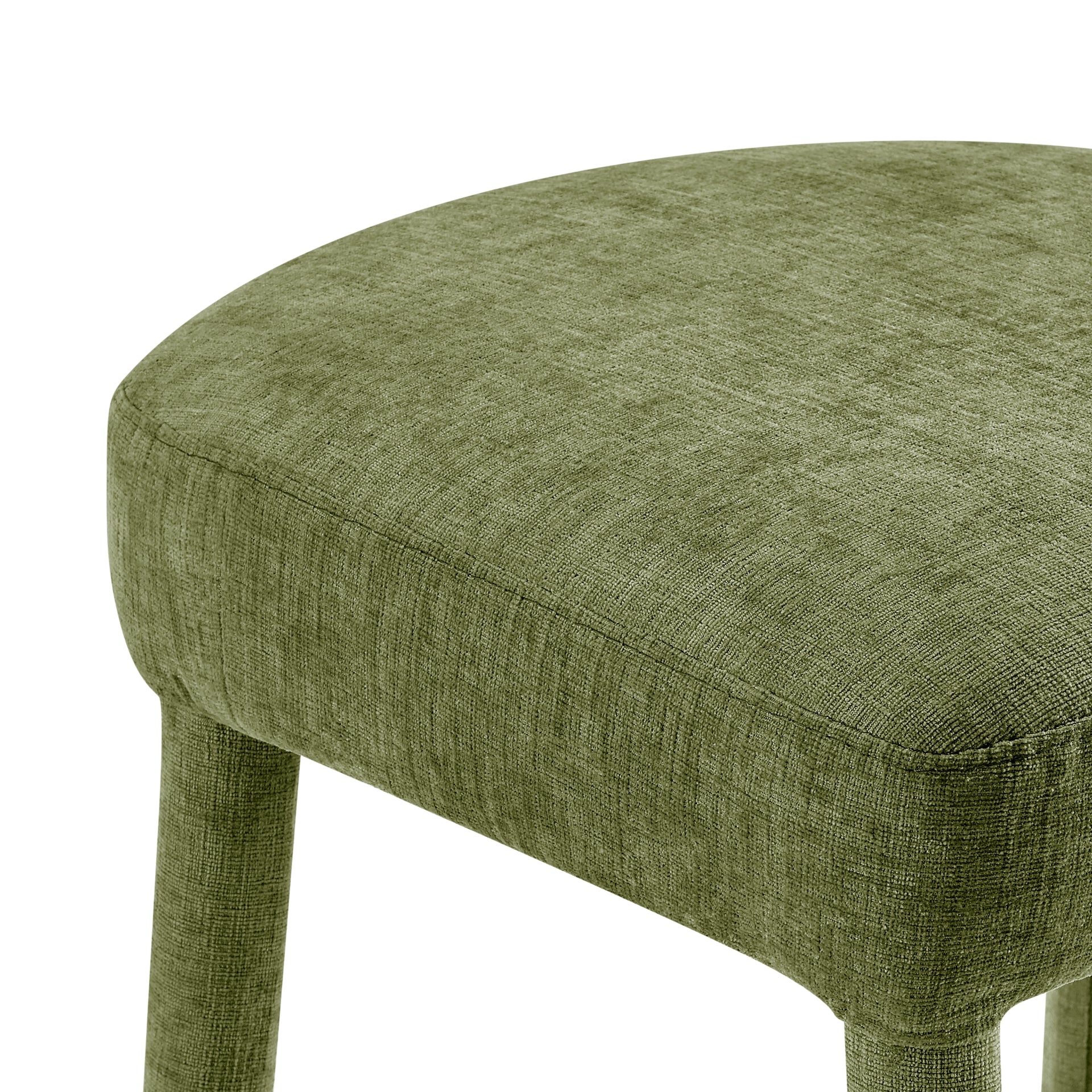 A refined blend of elegance and comfort, this counter-height stool brings a timeless presence to the room. Cloaked in a soft, textured fabric, its graceful silhouette nods to mid-century design with subtly flared legs and a tailored profile. A polished metal footrest introduces a quiet sophistication while offering enduring support. The generously cushioned seat is crafted for long-lasting comfort, making it as inviting as it is stylish. A piece designed to elevate kitchens and gathering spaces with understated luxury.