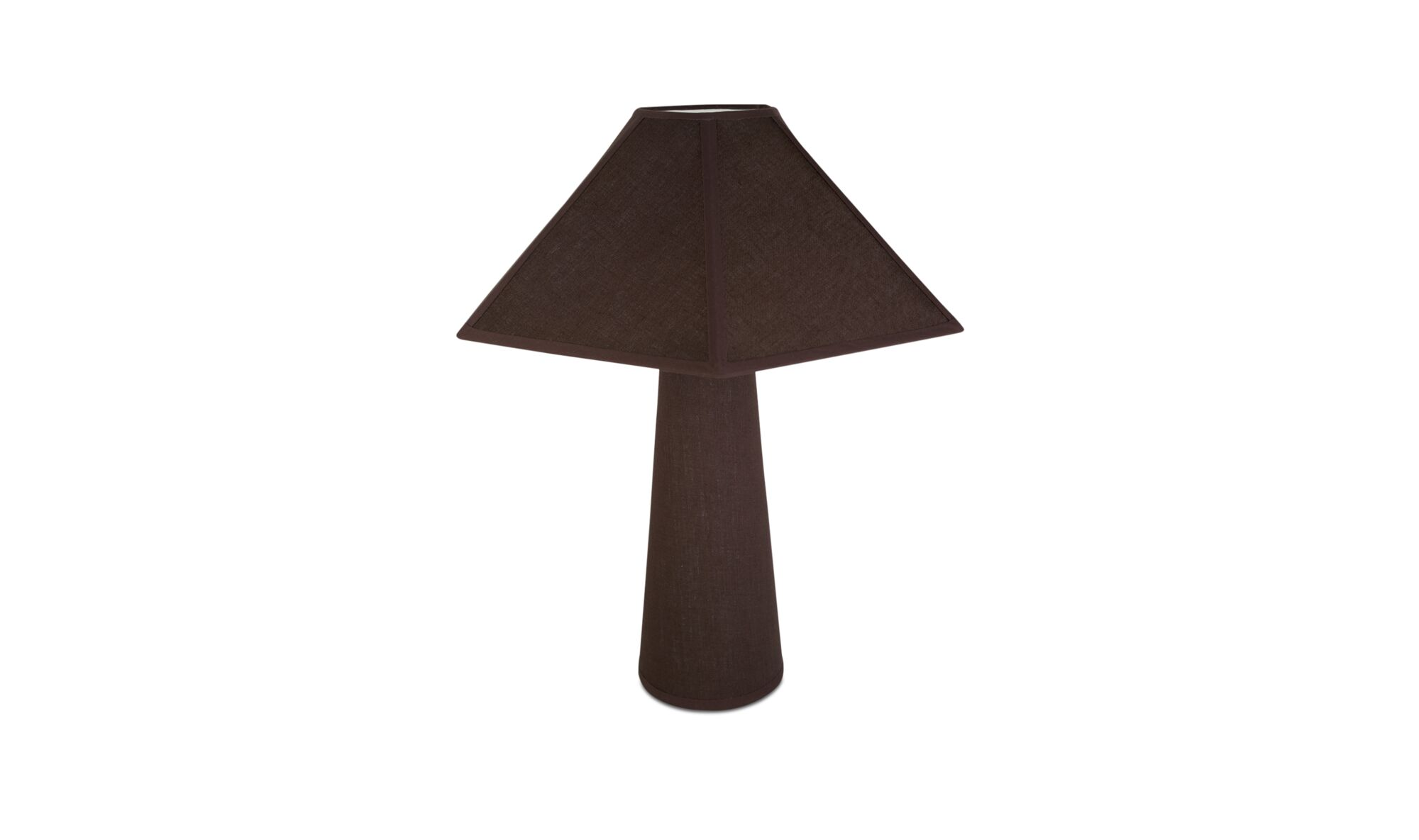 Wrapped entirely in soft cotton with tonal piping that frames its silhouette like bespoke detailing, the Halistra Table Lamp is at once tailored, sculptural, and inviting. Its geometric shade atop a rounded base creates a playful yet balanced profile, while rich tones and subtle texture lend a quiet vintage charm.Dimensions: