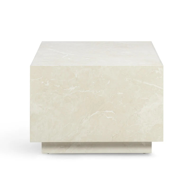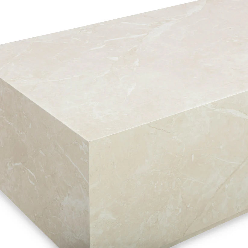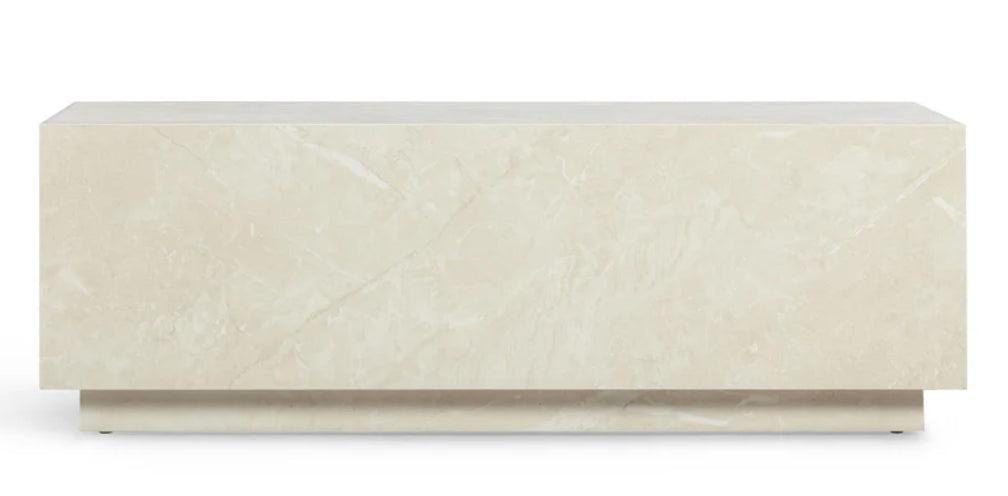 With its quiet elegance and sculptural form, the Lythmore Coffee Table brings a sense of refined permanence to any interior. Rendered in a soft faux cream travertine finish, it evokes the warmth and texture of aged stone—balancing timeless beauty with effortless practicality. Its smooth, easy-care surface complements the table’s clean geometry, while the option to pair two creates a striking, oversized centerpiece reminiscent of classic European salons. A piece that feels collected, not newly acquired.