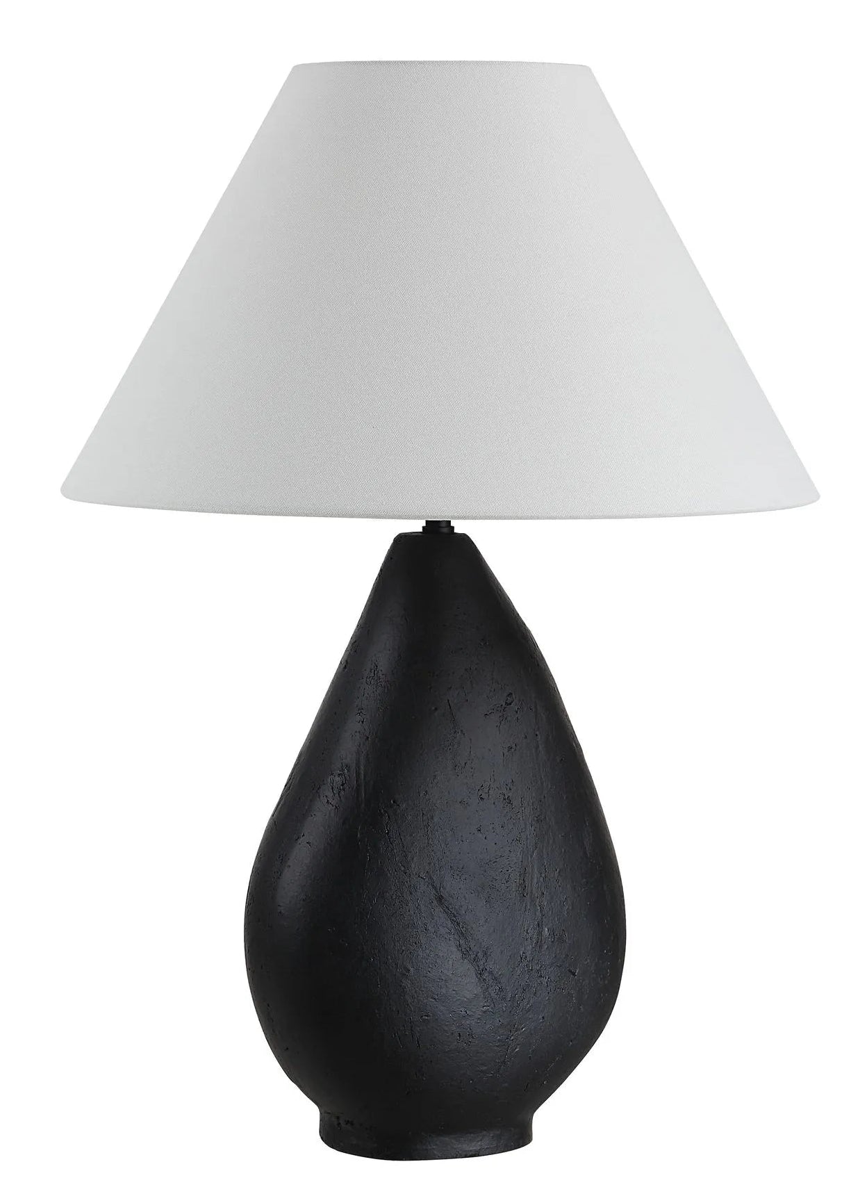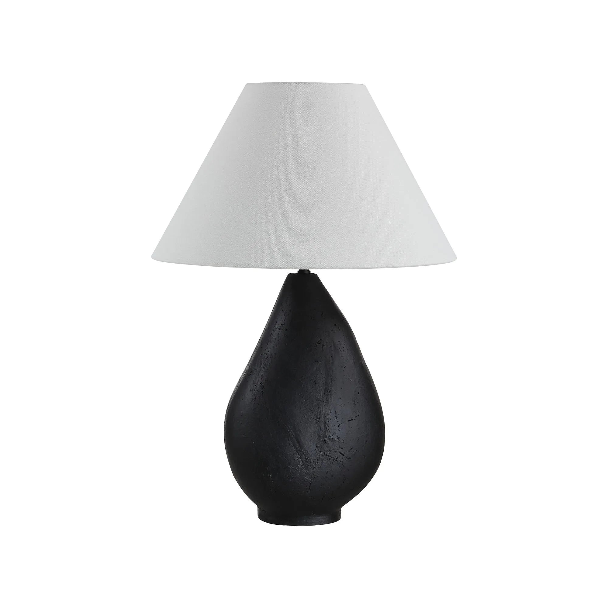 Its relaxed silhouette and matte black textured finish create a striking yet understated presence—proving that simplicity can make the strongest statement. An off-white tapered shade completes the design, casting a warm, inviting glow and setting the perfect ambiance with just a flick of the switch.