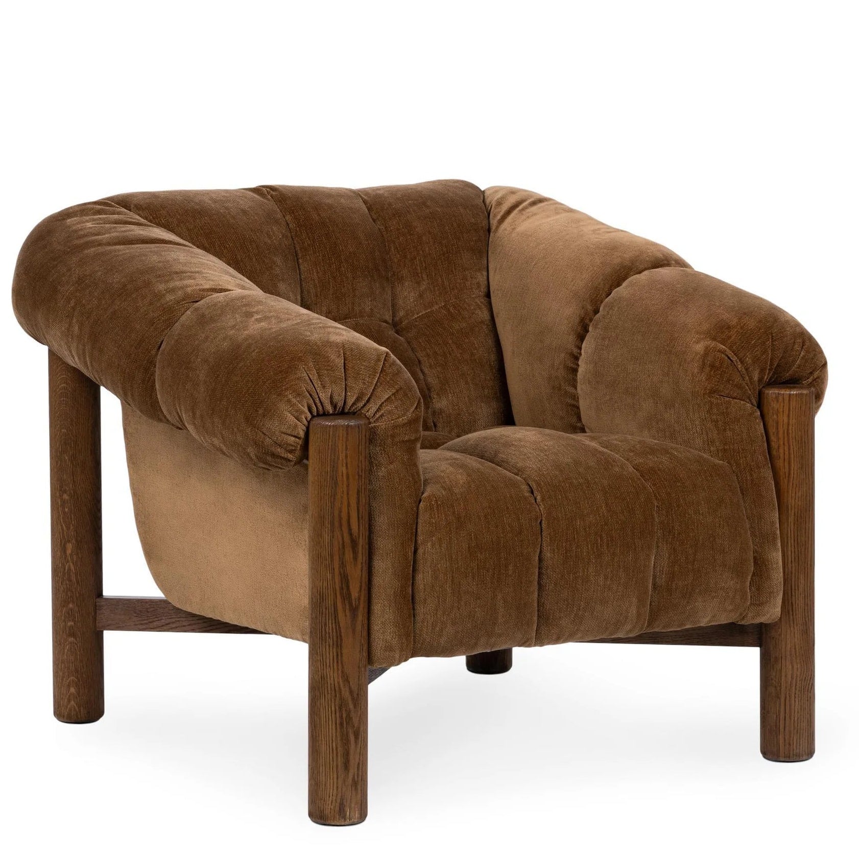 Embrace the sculptural elegance of this organically inspired accent chair. Upholstered in sumptuous, soft polyester, its deep tufting beckons you to unwind, while a warm, brushed oak frame anchors the design with natural sophistication. Gently rounded arms and a gracefully curved silhouette reimagine classic comfort with a contemporary lens. Perfect for living rooms, lounges, or any space seeking layered texture and elevated, inviting style.