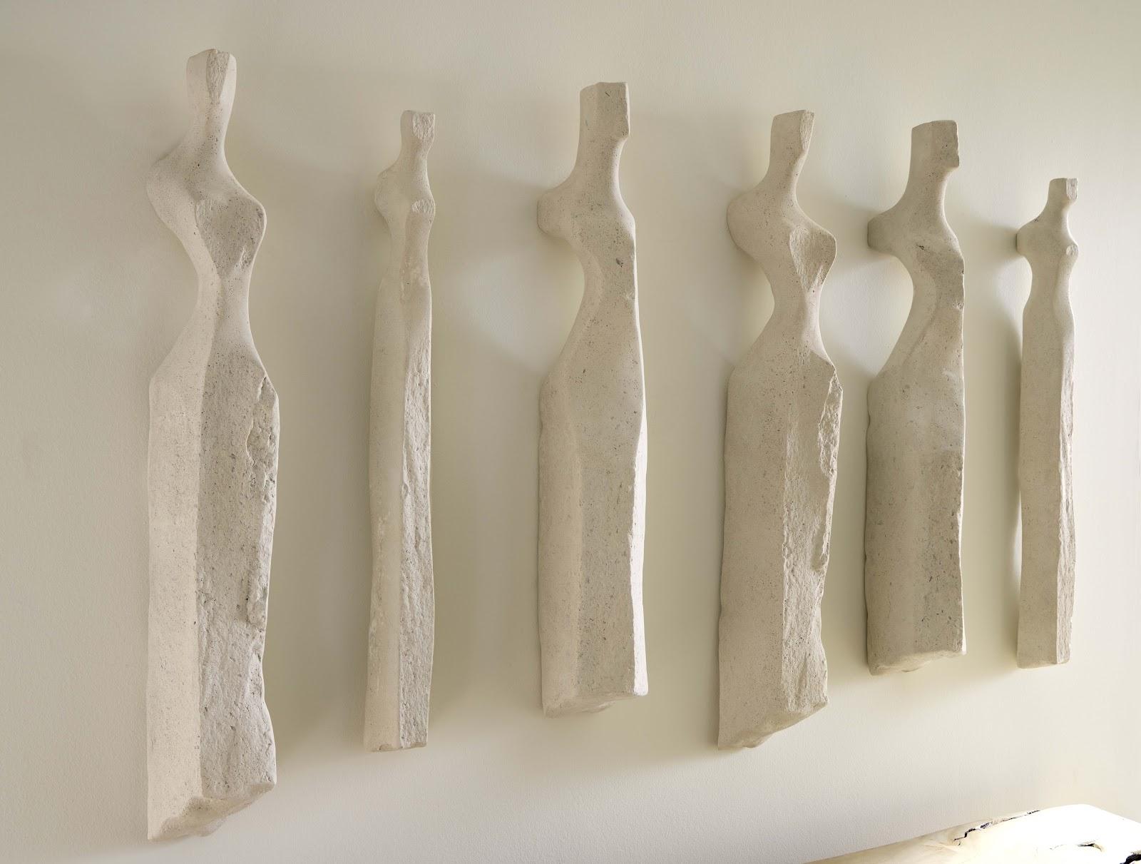 An ode to the timeless muse, this wall sculpture reinterprets the female form with abstracted, elongated lines and sculptural grace. Finished in a textured Roman Stone patina, it carries the quiet presence of an artifact while remaining decidedly modern. Both delicate and powerful, the piece brings depth and elegance to walls, whether displayed as a singular statement or part of a curated collection.