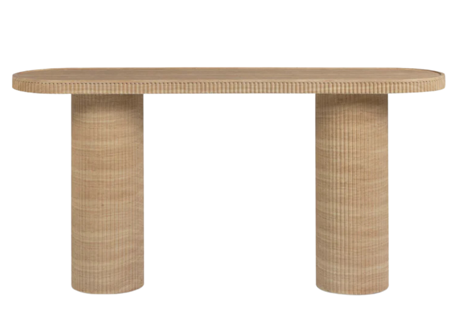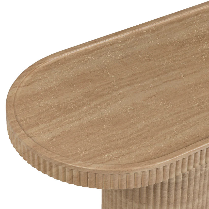 Introducing the Russon Console Table — a refined fusion of sculptural craft and modern edge. Hand-finished with care and offered in a warm travertine-inspired surface, it embodies effortless sophistication with a subtly rebellious spirit.