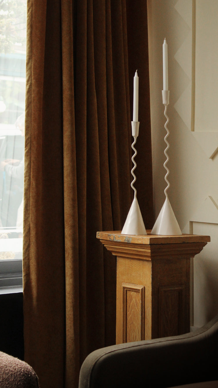 Product Dimensions:Short4” Diameter17” HeightTall4.75" Diameter22" HeightMaterial: MetalColour: Beige / White