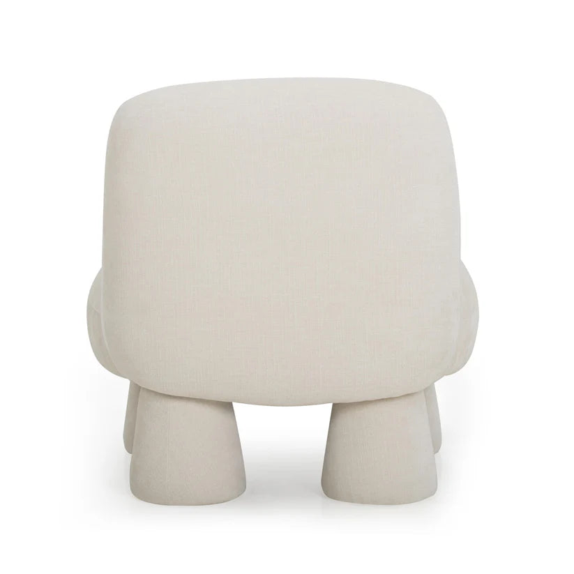 A playful study in form and comfort, the Sordalle Accent Chair blurs the line between furniture and sculpture. Its rounded legs and gently curved seat create a striking silhouette that feels both nostalgic and contemporary. Generously proportioned and luxuriously cushioned, it offers a cocoon-like comfort ideal for lounging.