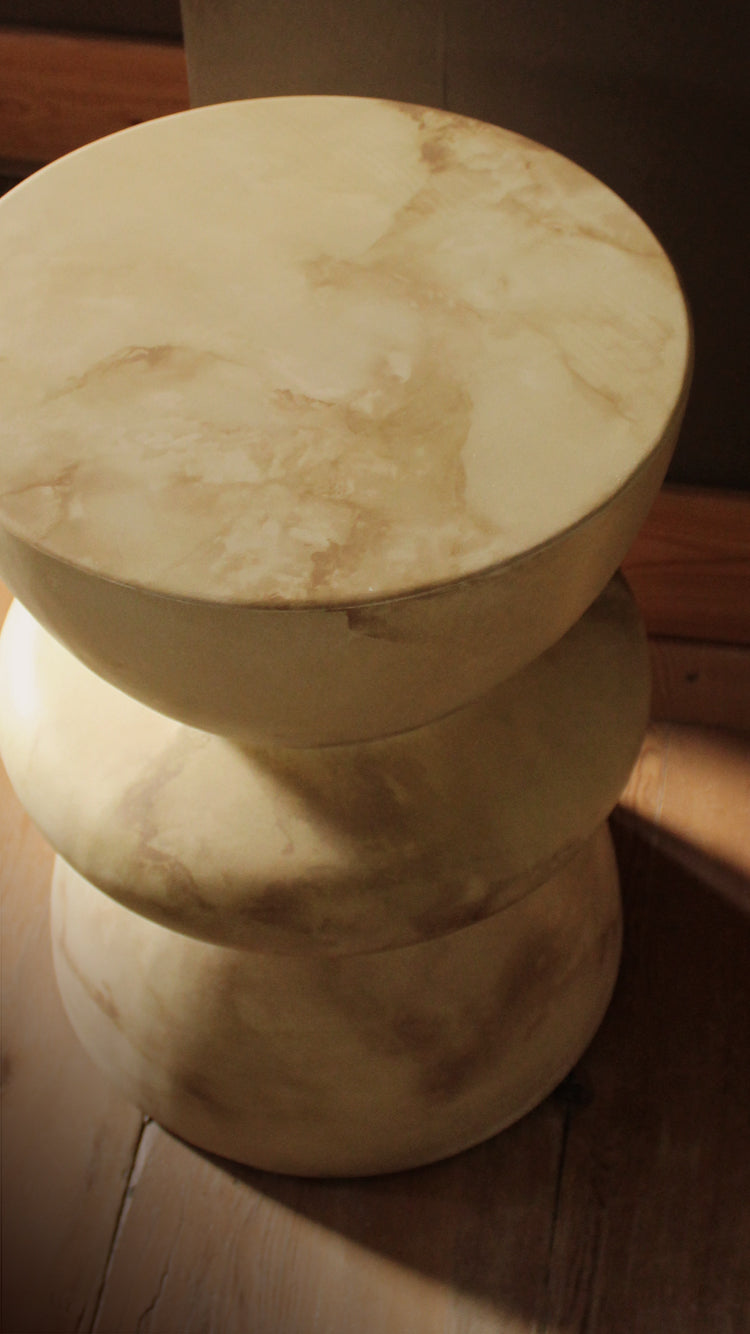 Crafted by skilled artisans, glass fiber reinforced concrete is a lightweight solution to this statement design. Stone looking pattern is applied by hand per piece, making the pattern unique from piece to piece. Suitable for indoor or outdoor living.