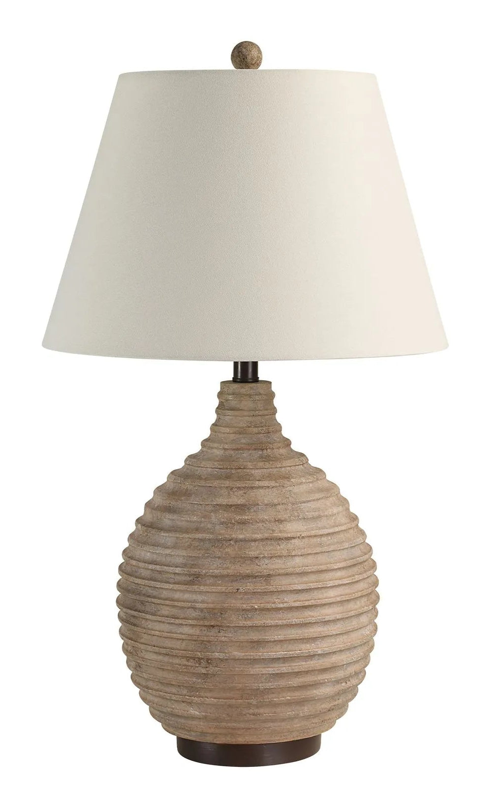 Designed to captivate, it showcases a richly textured base finished in warm brown and beige tones, complemented by brass-plated iron accents for a subtle hint of shine. An ivory linen tapered drum shade softens the look, creating a harmonious balance of texture and elegance. With its convenient 3-way switch, adjusting the light level is effortless—allowing you to tailor the ambiance to any room or mood.