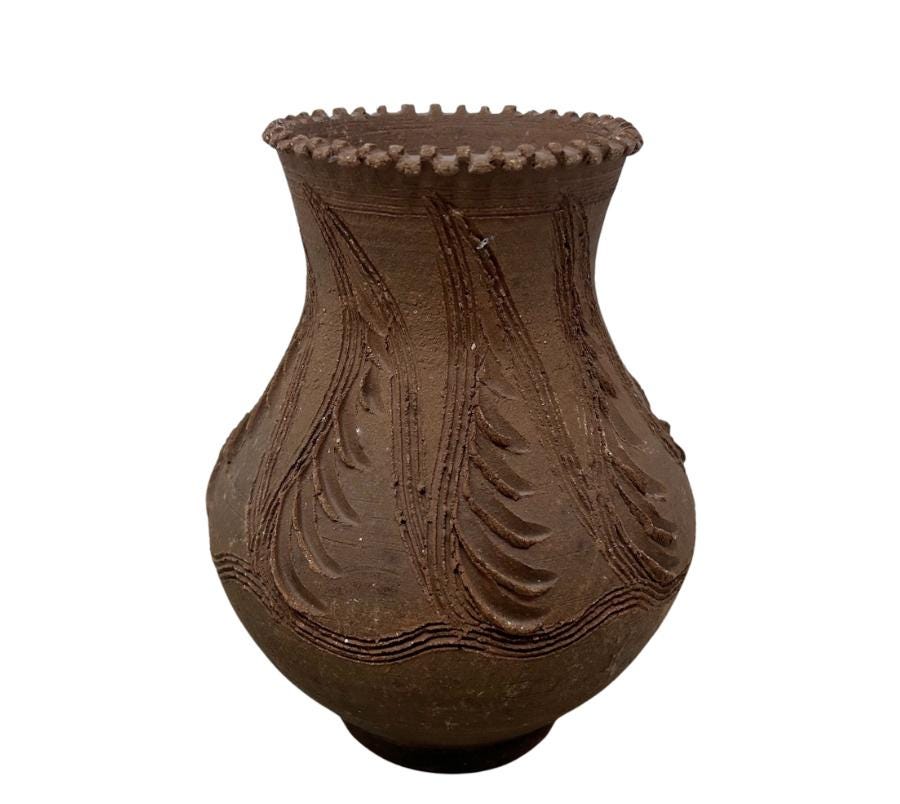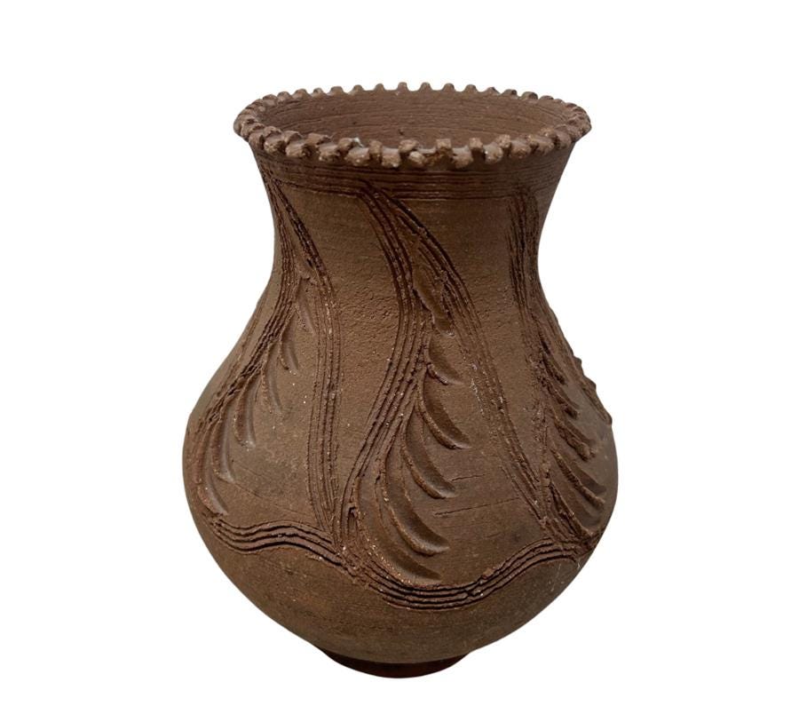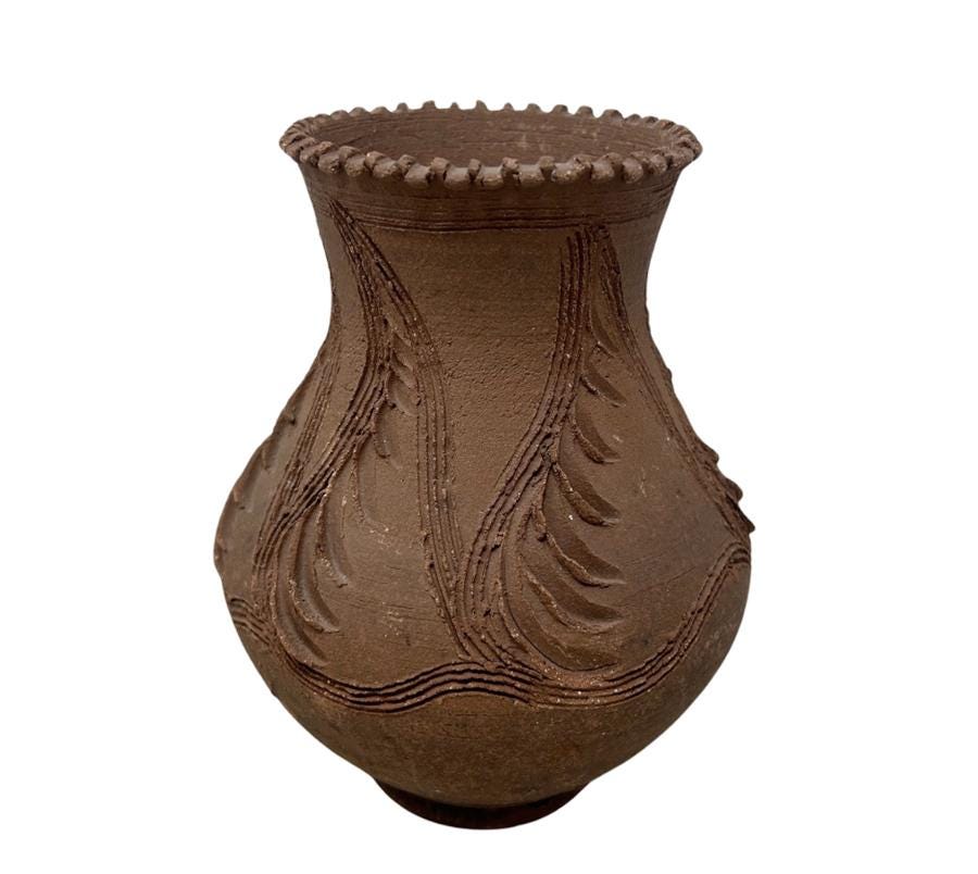 Vintage Carved Clay Pot