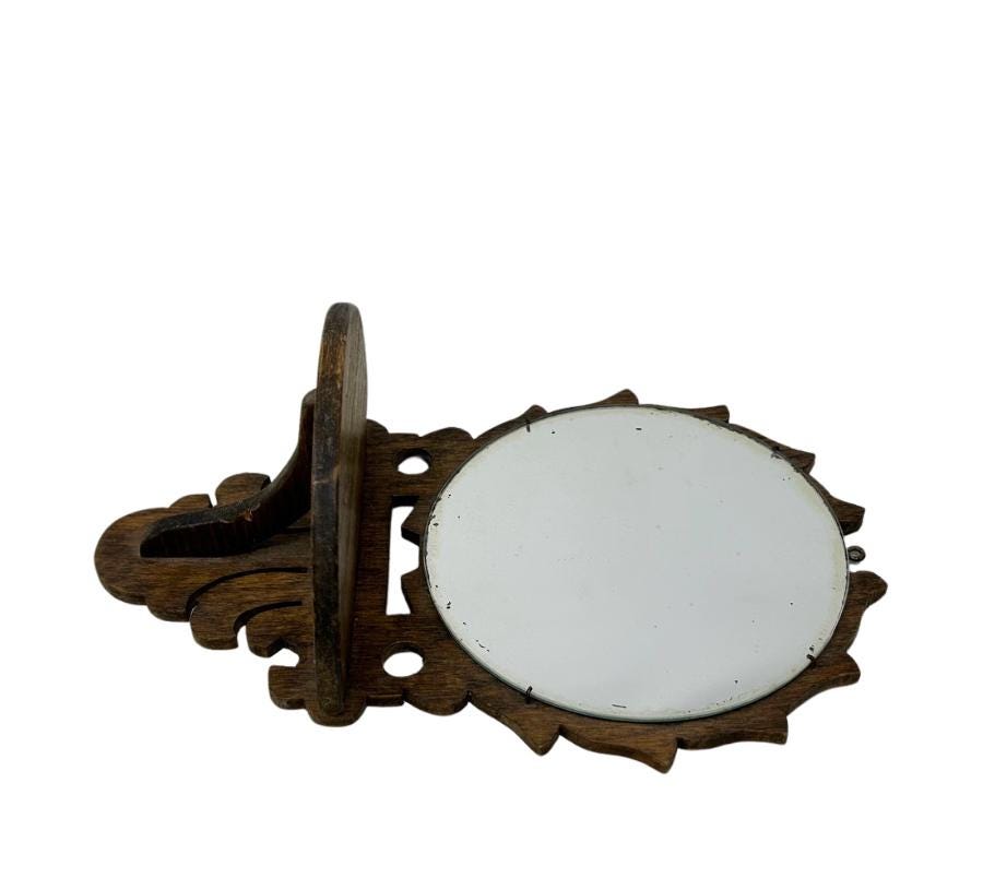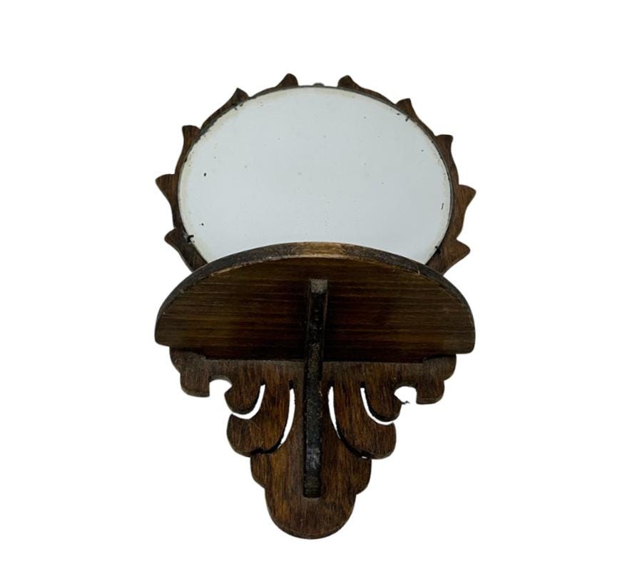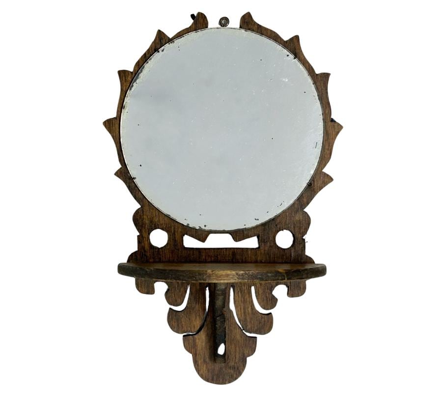*Mirror surface features antiquing and wear. Please not shelf bracket has small crack pictured.