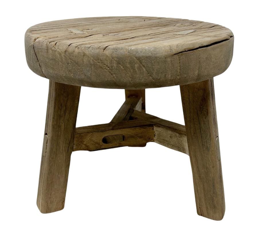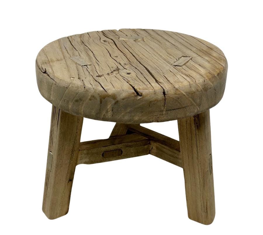 Vintage Primitive Round Wooden Stool