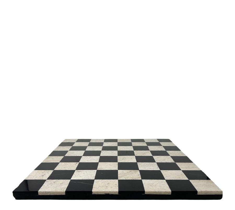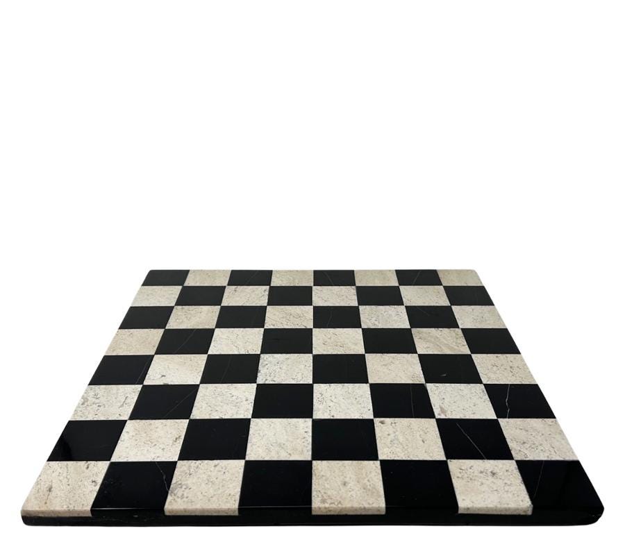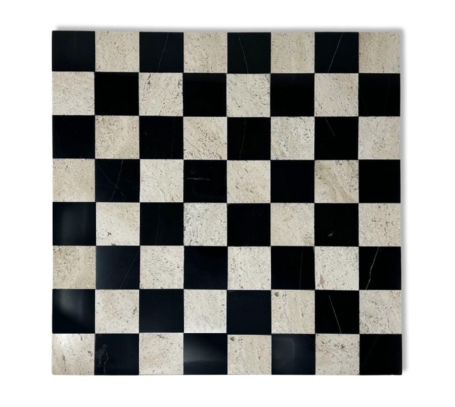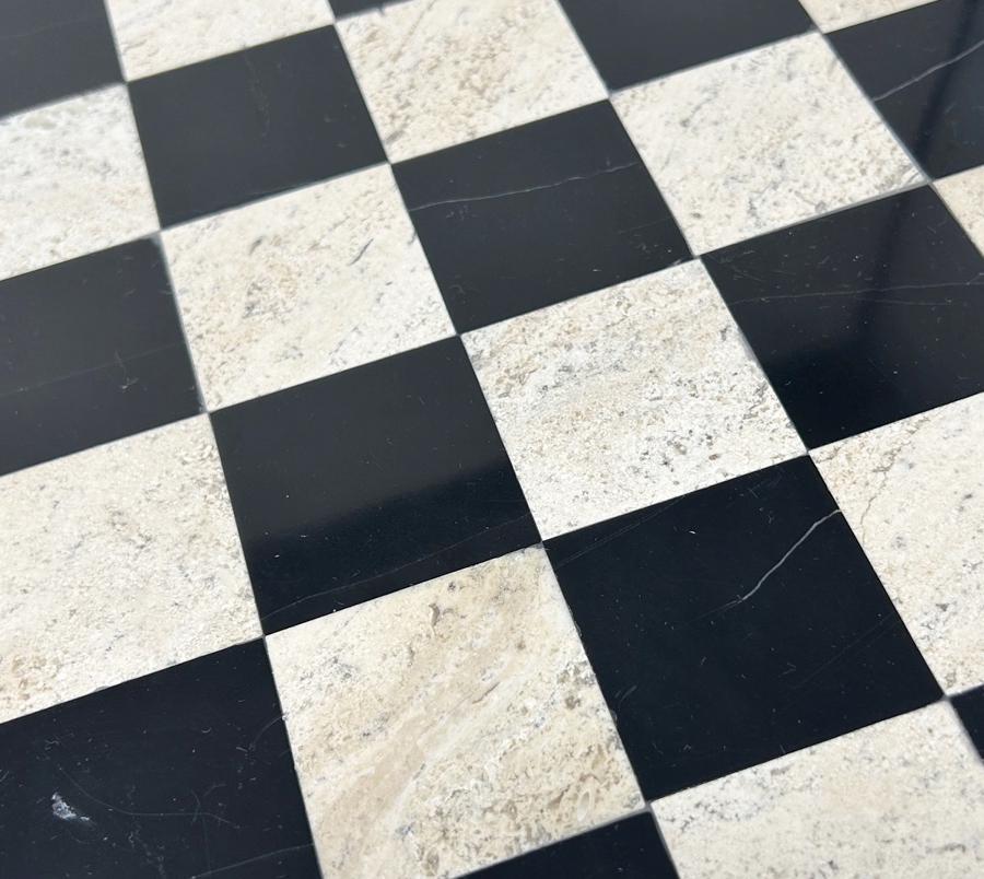 Vintage Travertine & Black Onyx Chess Board