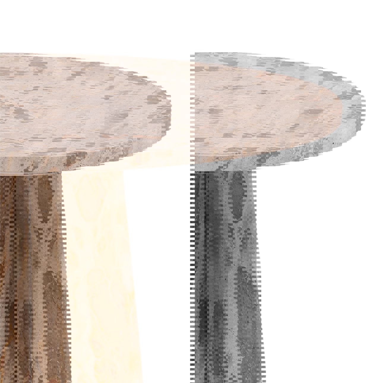 The Whitemire Marble Table showcases a richly toned marble top, where warm beige and deep brown hues mingle in striking natural variations. Each stone surface is entirely unique, its veining and color shifts telling a story of timeless elegance. Resting atop a sleek pedestal, the design recalls the intimate charm of old-world cafés while offering a modern edge.